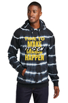 A pattern of dark, inky single-color hues mixed with color-on-color tones makes this fleece hoodie a true tie-dye standout.